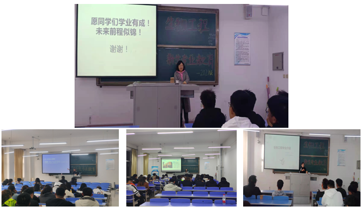 【新生】10月13日-20日,环境与生物工程系邀请原沈阳化工大学陈若飞副教授、赛赋医药有限公司朱青青老师和生物工程专业教研室主任赵欢老师等担任主讲人,分别进行了四场、共计8学时的2021级新生入学专业教育讲座。在讲座报告中,陈若飞副教授为学生讲解了生物工程专业和微生物工程与生物化学发展过程的相关内容,帮助学生深入了解专业领域的最新动态,为学生提供了与专业研究领域处于领先水平学者交流、请教的机会;朱青青老师为学生重点介绍行业的发展趋势、专业前沿技术、就业情况等热点问题,使学生提高了对本专业研究领域的认识、增加了对本专业的学习热情和兴趣;赵欢老师向学生介绍了学校生物工程专业的师资力量以及近几年本专业在教学、科研、学科学位建设、国际交流与合作等方面取得的成绩和成果,还就教师配备、课程安排和学生比较关心问题进行了详细讲解。在专业交流讨论环节,环境与生物工程系主任刘慧老师鼓励广大同学要好好学习专业课知识,为自己的未来做好规划,为毕业就业打下良好的基础;生物工程教研室曹熙老师叮嘱大家要好好的利用课余时间多学习、多交流,不断适应大学学习生活,进而实现个人健康成长。(根据环境与生物工程系供稿修改 通讯员:赵欢)