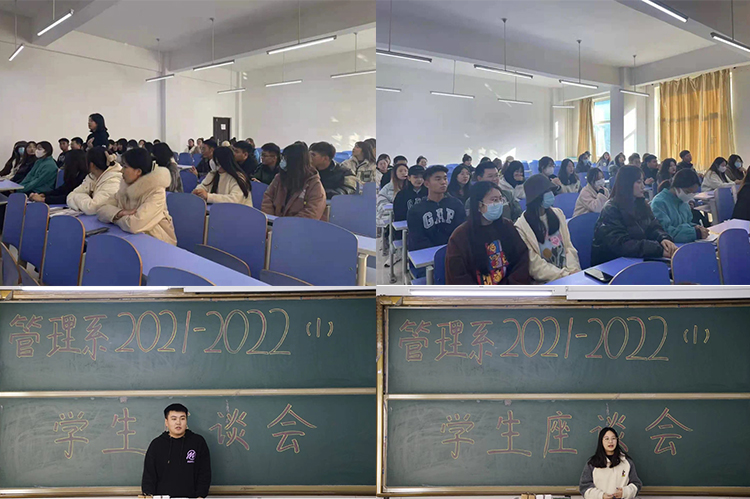 【教学】11月3日下午,管理系组织召开2021-2022年度第一学期教师座谈会、学生座谈会。会议由管理系教学工作副主任郑鑫主持,管理系全体教师以及各年级学生代表参加会议。学生座谈会上,各年级学生代表结合专业教师的课堂教学、授课方法、教学管理、考级考证等方面发表了各自的看法,并且提出了学生在求学过程中遇到的问题。会议过程中,郑鑫老师详细地记录了每一位学生所反映的问题,会后将学生在不同专业课上的问题反馈给各科任课教师,以便更好地提升学生的学习能力以及上课体验。同时郑老师解答了学生在当下所遇到的困惑。教师座谈会上,郑鑫向全系教师对期中教学检查情况进行了说明,通过随机听课、现场巡视等方式就教学安排、课堂教学、学生到课、课堂教学秩序等情况进行了总结。各教研室主任及专任教师代表就教风与学风情况、课堂教学质量等情况进行了交流。通过召开学生座谈会、教师座谈会,进一步促进了教师在肯定和反思过程当中更清晰地了解教师工作的性质和要求,更好地管理和服务学生,为了下一阶段工作的继续开展提供了有益的经验和坚实的基础。(根据管理系供稿修改)