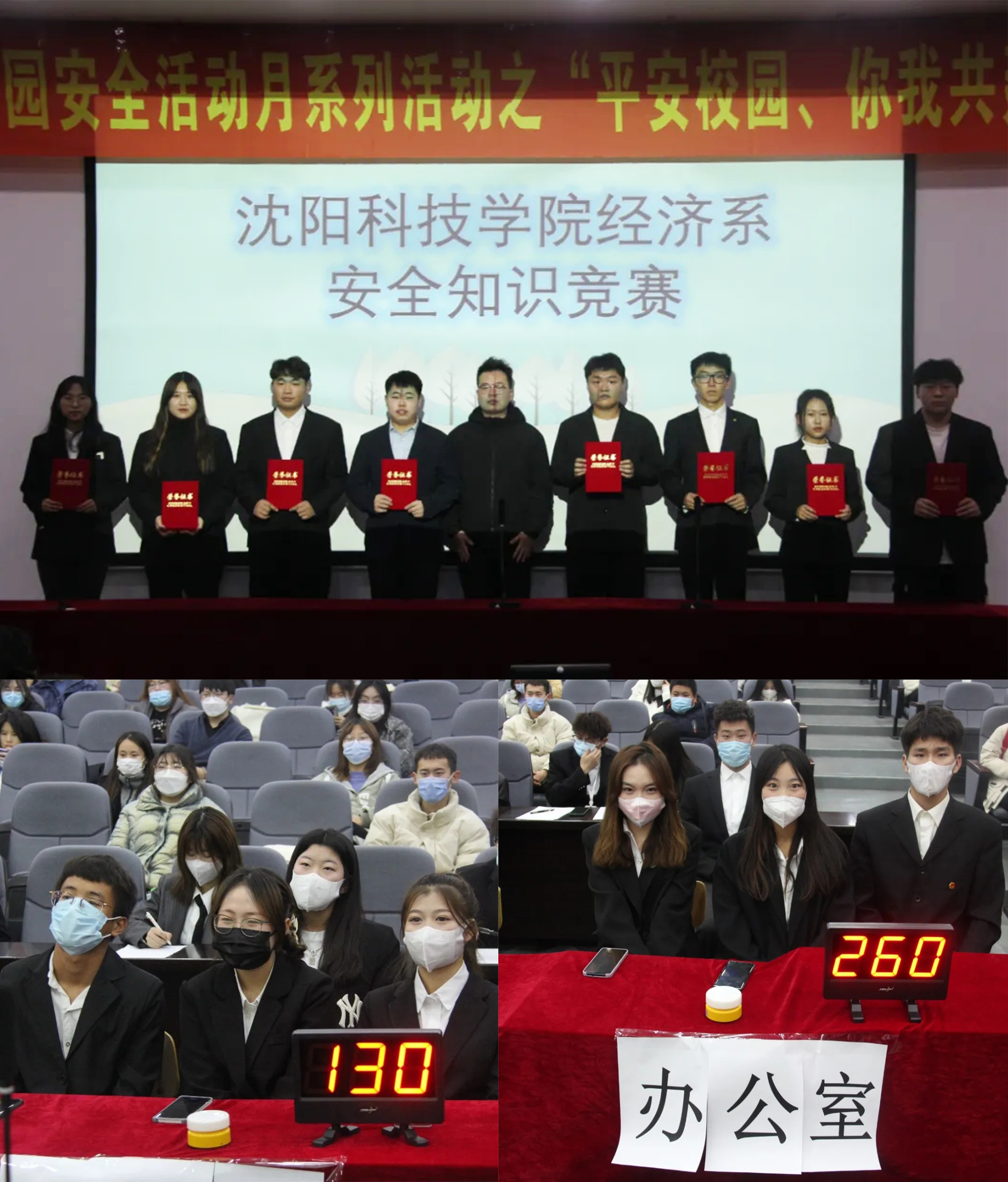 【学团】11月17日,经济系在图书馆报告厅组织开展“平安校园、你我共建”安全知识竞赛活动。比赛内容涉及疫情防控,消防知识,食品安全,网络安全等内容,活动旨在进一步普及大学生安全常识,牢固树立安全意识,强化底线思维,提高防范能力,为进一步构建平安校园提供了有利保障。(根据经济系供稿修改 通讯员:黎明东)