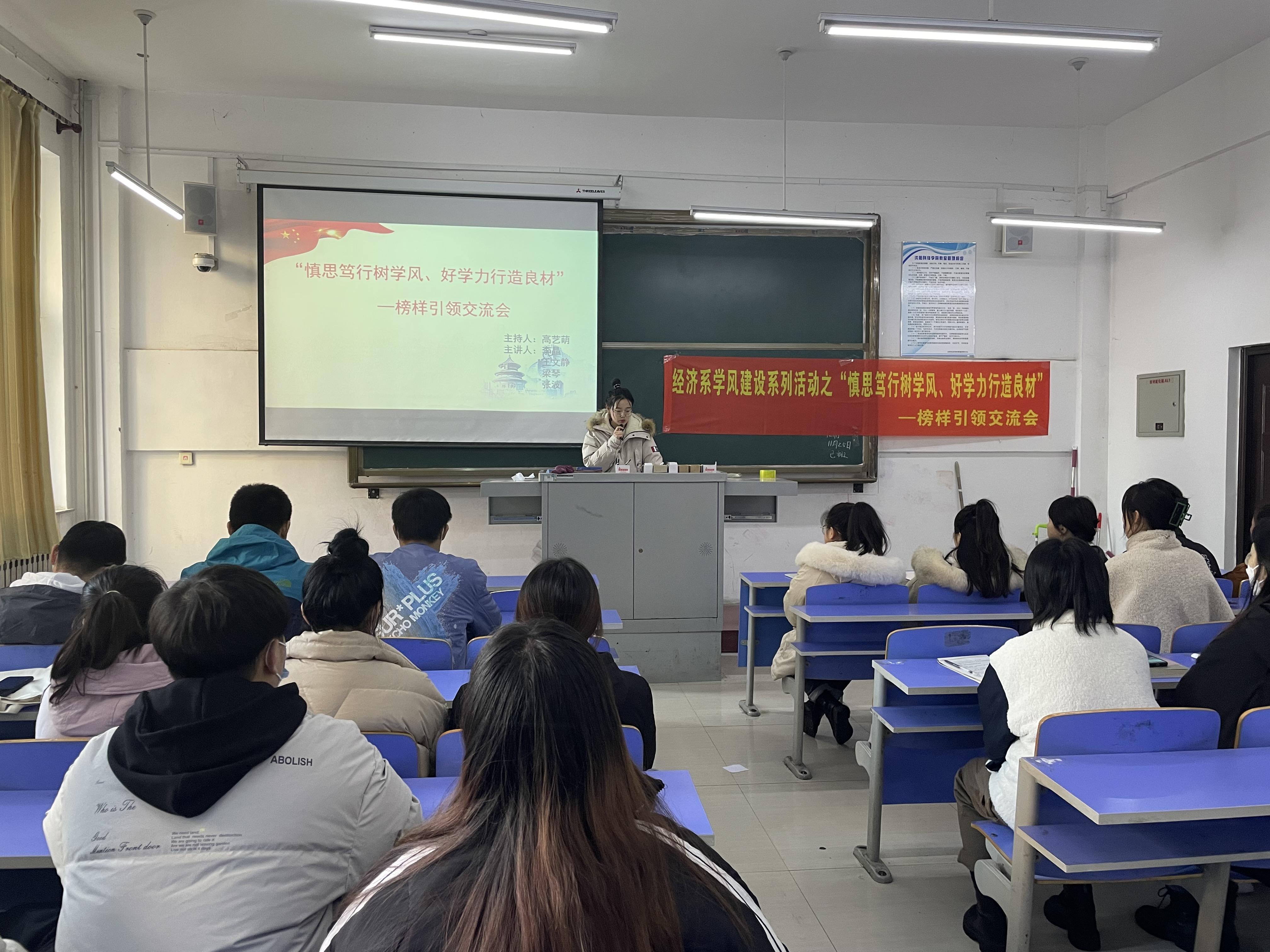 【学风】十一月下旬,经济系组织2019级、2020级的15个班级开展“慎思笃行树学风、好学力行造良材”榜样引领交流会。此次交流会邀请荣获国家奖学金、省政府奖学金、励志奖学金的学生代表为大家进行经验分享。交流会上,他们分别从思想、 学习、生活等方面跟同学们分享自己的励志故事。以榜样引领,凝聚榜样力量,此项活动在展现榜样力量的同时,也激励广大同学共同学习,共同进步。(根据经济系供稿修改 通讯员:黎明东)