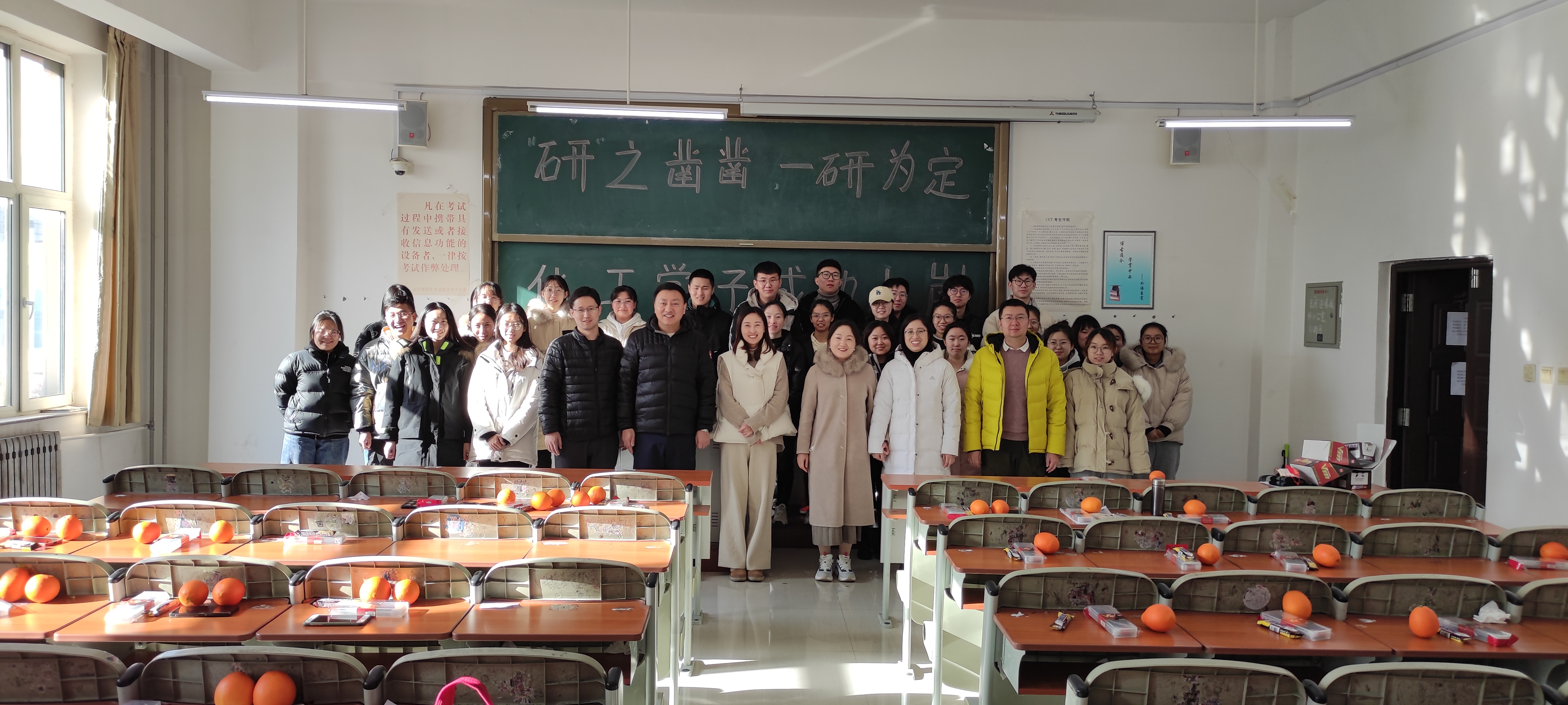 【考研】12月21日,化学工程系开展了“研之凿凿、一研为定”为主题的温暖助考活动,为即将考研的学子送去一份温暖、一份鼓励。活动中,都颖书记肯定了考研学子一年来的辛苦付出,鼓励同学们坚持理想、坚定信念,将考研坚持到最后,同时要劳逸结合、放松心情,以最好的状态迎接考研初试。随后,辅导员老师和教师代表将系部精心准备的考试文具套装和加油食品送到考研学子手中,同学们真切感受到了系部作为他们强大的后盾在为他们加油助威。活动现场温馨感人、气氛高涨。(根据化学工程系供稿修改 通讯员:常舒扬)