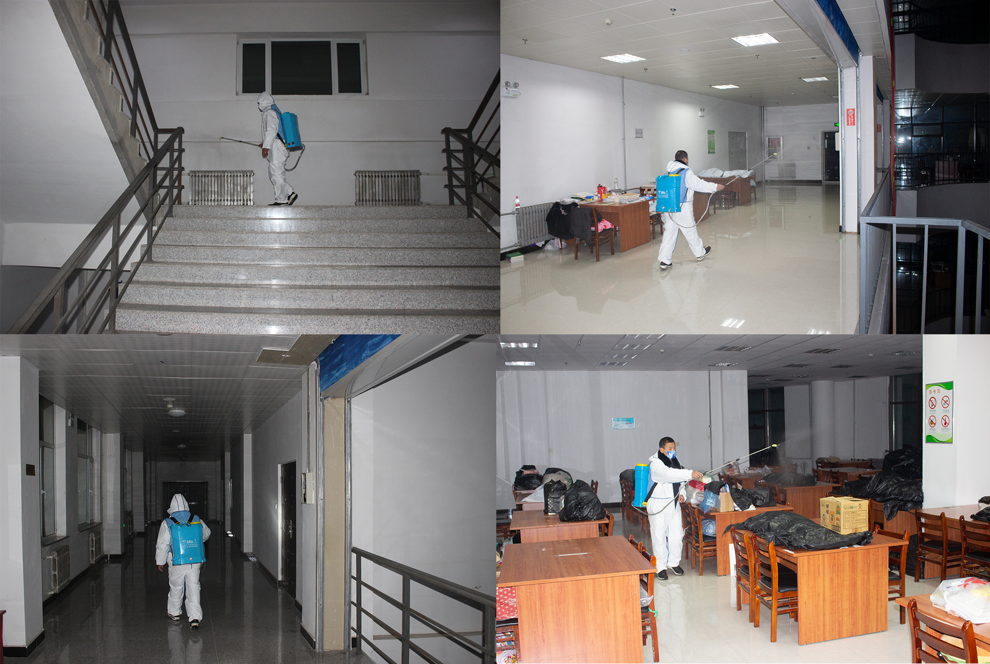 为确保消杀达到良好的效果,学校安排了专业的消杀人员,并用配比好的消杀液进行消杀,做好了对楼梯扶手、门把手的消毒以及学校教室、走廊、卫生间、水房等场所的消杀通风和环境清洁工作,做到不留死角、不留盲区,全方位覆盖,有效地保障了校园免受冬季传染病的侵袭,给在校师生营造了健康、安全的校园学习工作环境。