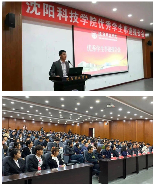 报告会上,从迷茫到坚定,分享了自己高考结束后到大学期间心路历程的宋健飞;将学习与科研训练相结合,披荆斩棘、刻苦钻研的创新学子何山;认真负责、踏实肯干,热心服务师生的学生干部尹越;分阶段制定计划,刻苦学习,实现学习成绩专业前三名目标的彭惠源;奉献学生工作、投身志愿服务的抗疫先锋靳博慧;热爱新闻、严于律己的校园宣传先锋关翔予;勤于思考、善于行动,为青春梦想努力拼搏的李加琳;勤学笃实,不断探索与创新,拥有七项专利的陶海威;携笔从戎,用青春践行使命,在绿色军营中锻造自己火热青春的王天帅;主持过各类文艺活动、参与多次科研创新活动的文艺之星魏嘉琦;品学兼优,热衷志愿,奉献爱心的黄婷艳;坚持苦练专业技能,积极参加各类专业大赛的许诗曼;组建学习小组,分享自己学习资源,带动同学一起进步的吴颖, 分别以自身经历和经验向广大新生阐释了他们对不负青春、勇于奋斗的大学生活理解,用实际行动诠释着“博学笃行·种德修身”的校训精神,为学校、为社会贡献了自己的青春力量!同时,对新生做好生涯规划、树立目标理想、掌握学习方法起到引领和借鉴作用。