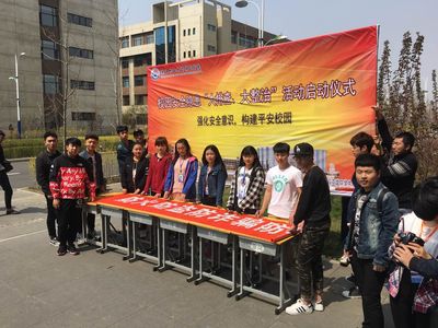 为进一步贯彻落实我院安全隐患“大排查、大整治”工作会议精神,强化大学生安全防范意识,构建安全、稳定、和谐的校园环境,学生宿舍管理科于4月21日12时组织大学生自律委员会学生干部在第二教学楼门前,举办校园安全隐患“大排查、大整治”宣传动员暨校园安全活动月启动仪式。