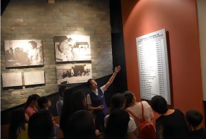 解说员带领全体师生参观纪念馆,讲述了从日本发动侵华战争到抗战胜利的艰难历程。馆内展示了日寇对我国人民的剥削和迫害及爱国主义者的反抗。最后,全体师生祭奠为抗战胜利而牺牲的革命先烈,并在纪念馆前集体默哀。