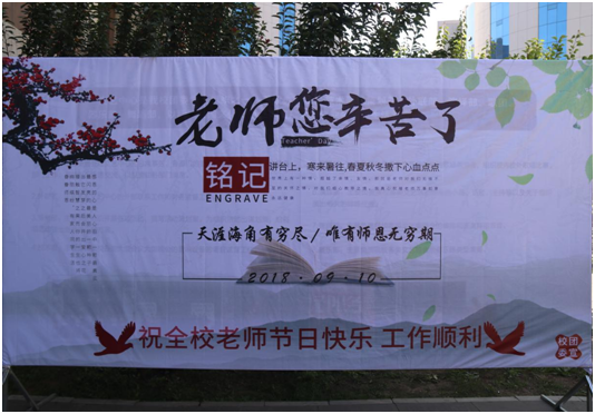 化学工程系的同学们在教学楼门口布置展棚,迎接老师的到来,为老师赠送礼物,对老师诉说节日祝福语,以此来表达他们对老师的感激之情。