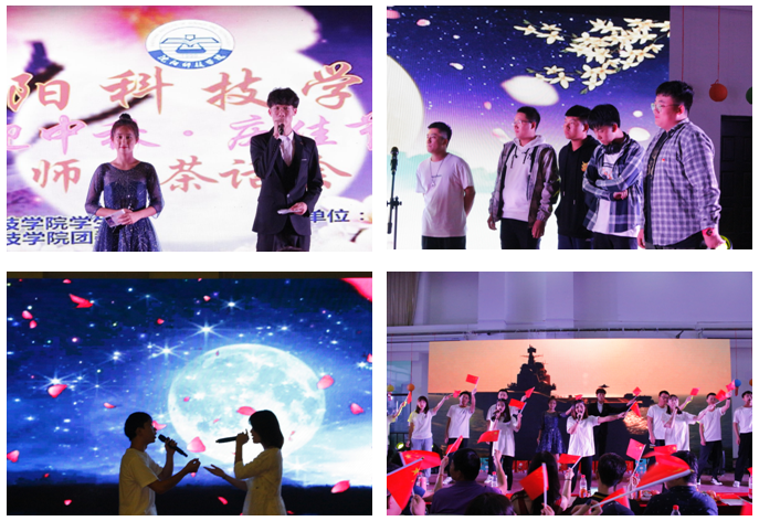 为了让同学们度过一个欢乐祥和的中秋佳节,学校为同学们精心准备了节日月饼、干果、水果等食品,为同学们送上中秋的仪式感;精心策划的歌曲、舞蹈、猜灯谜、接成语等系列文艺节目,内容丰富且形式异彩纷呈,让同学们感受到沈科大家庭的温馨气氛;“心有灵犀”及“歌曲对擂赛”互动环节中,同学们积极上台参与,各队代表都奋力而战,描述词语的同学们手舞足蹈的演示和心有灵犀的默契更让大家捧腹大笑。活动现场灯光璀璨、高潮迭起,掌声阵阵,每个人都洋溢着满脸的笑容,到处弥漫着节日的气息和欢乐的氛围。