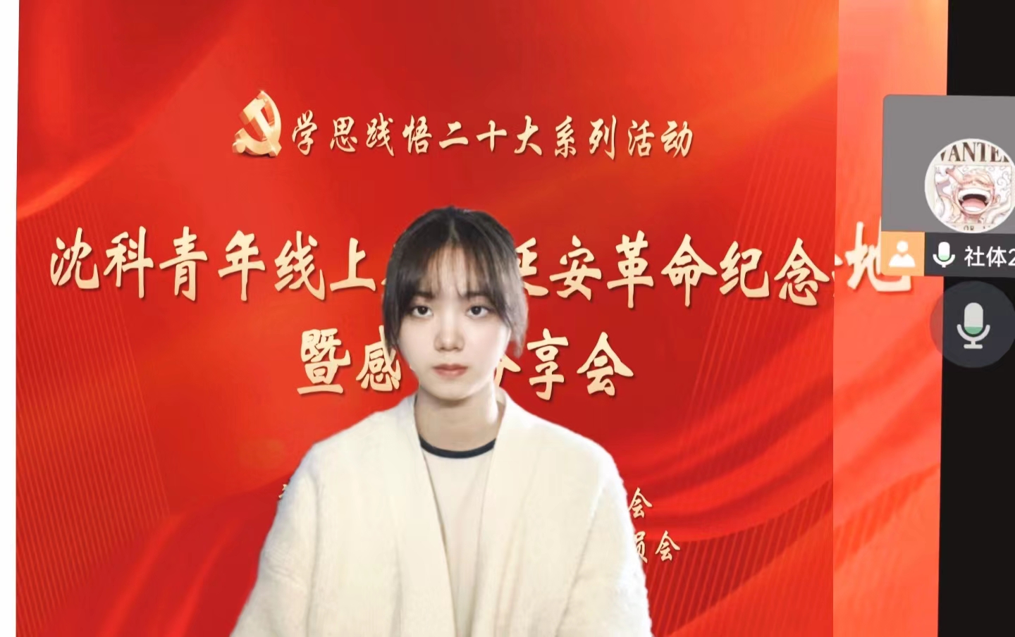 在全校上下深入学习宣传贯彻党的二十大精神之际,结合现阶段疫情防控形势,12月2日-5日,我校组织开展了学生党员、学生干部“云参观”延安革命纪念馆暨感悟分享会。通过置身于红色景点的“云”参观、“云”感悟方式,引导广大学子追寻红色记忆、传承延安精神,感怀峥嵘岁月、赓续奋斗血脉,充分实现“四个融合”,打造坚实“四个底色”。