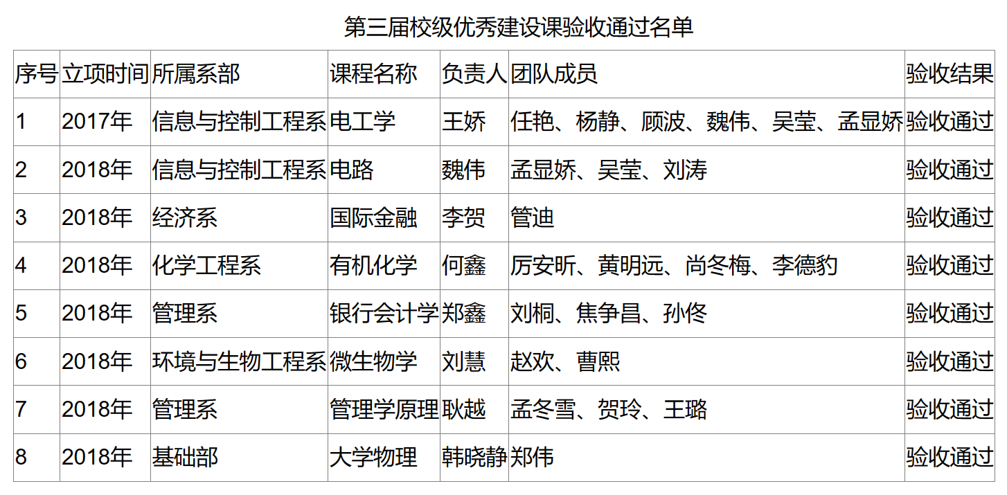 参与本次校级优秀课建设的课程涉及六个系部,共十一门课程。验收过程中,各课程负责人从课程建设团队、课程建设设计与实施、课程基本资源、课程建设成果、课程建设与效果等方面的完成情况进行了总结汇报。评审专家组听取汇报后,按照《校级优秀建设课验收评选指标》的各项指标要求,共有八门课程通过验收。