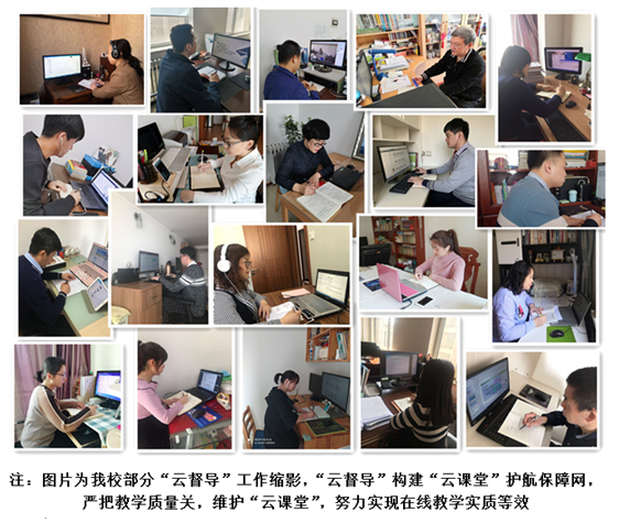 为掌握我校在线教学开展情况,摸清课堂教学效果,努力使学生在线学习与线下课堂教学实质等效,学校成立了由教务处、教育教学发展研究中心、实验中心、各教学系部组成的教学“云督导”,各级“云督导”层层负责,扎实推进我校教学检查与督导工作。分别从教学检查、督导督学、系部自查交流等多层次、多角度、全方位,立体化跟踪在线教学全过程,与全校师生共同创造了有保障、有质量的“云课堂”。