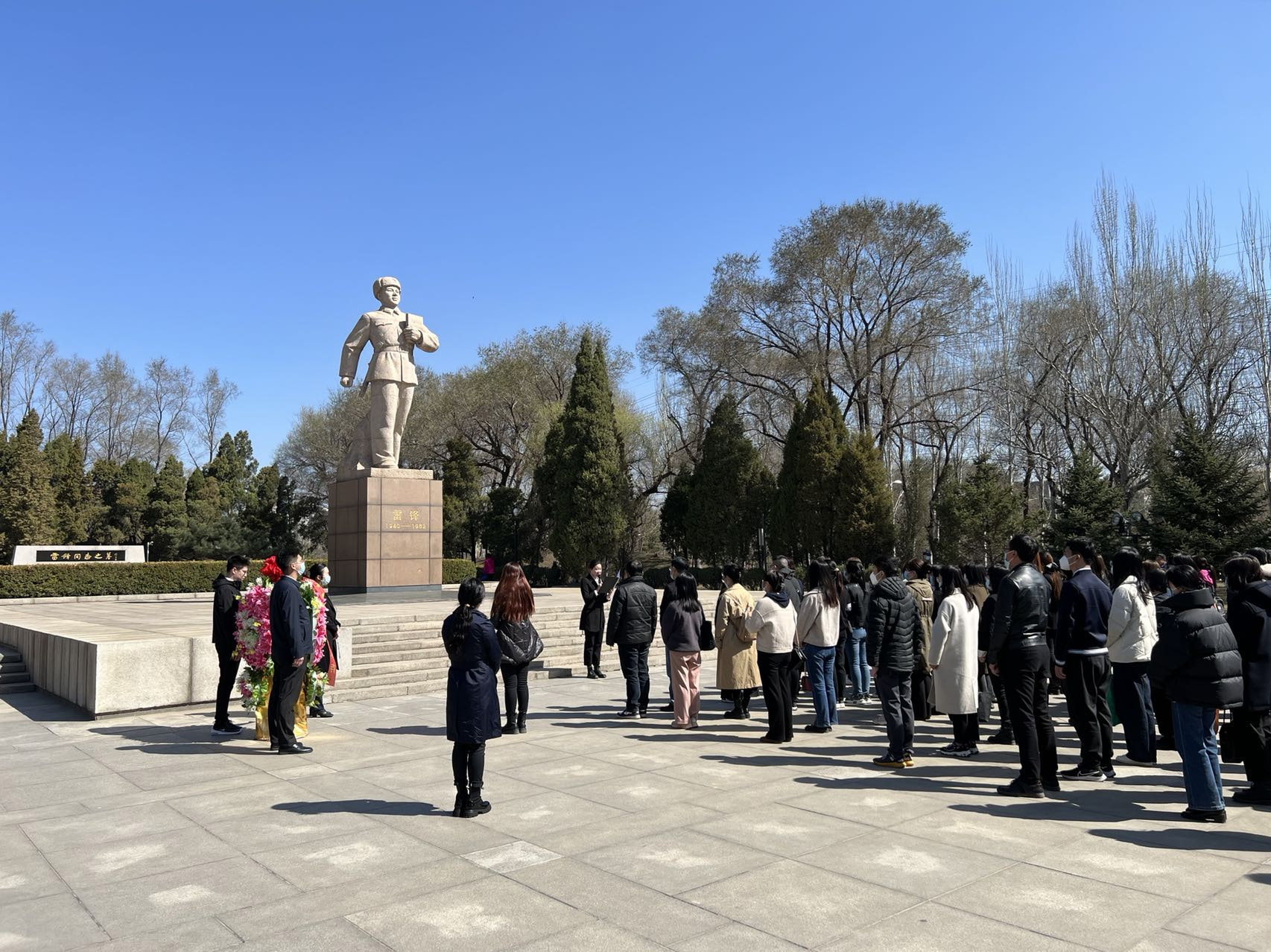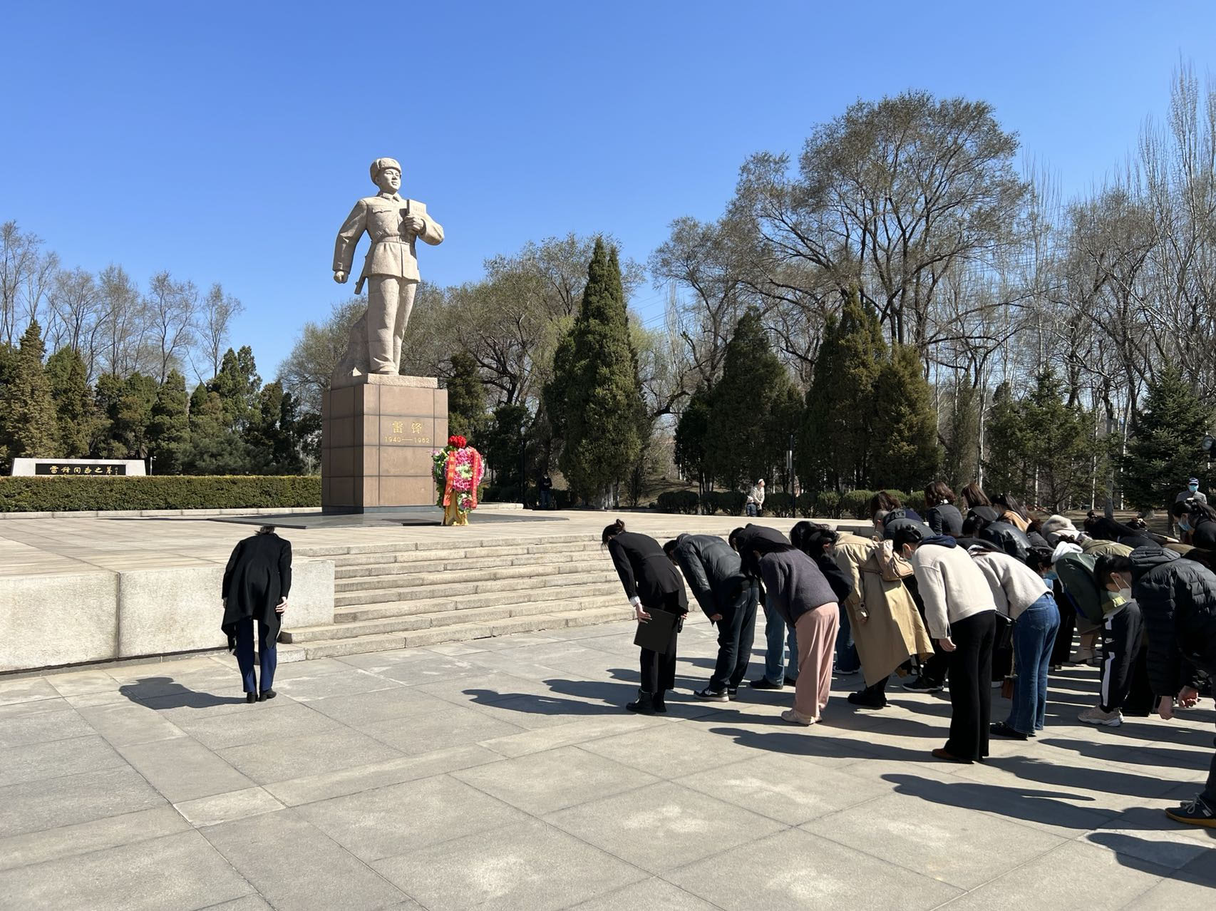 当日上午,在雷锋同志塑像前,全体教师列队肃立,现场气氛庄重。教师代表李响深情地宣读了祭雷锋文,随后现场全体人员向雷锋同志塑像三鞠躬并敬献花篮、整理缎带,表达对这位伟大共产主义战士的无限哀思和崇高敬意。