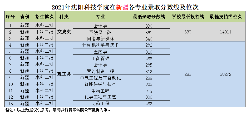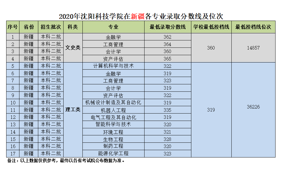 我校在新疆维吾尔自治区近三年各专业录取分数线及位次