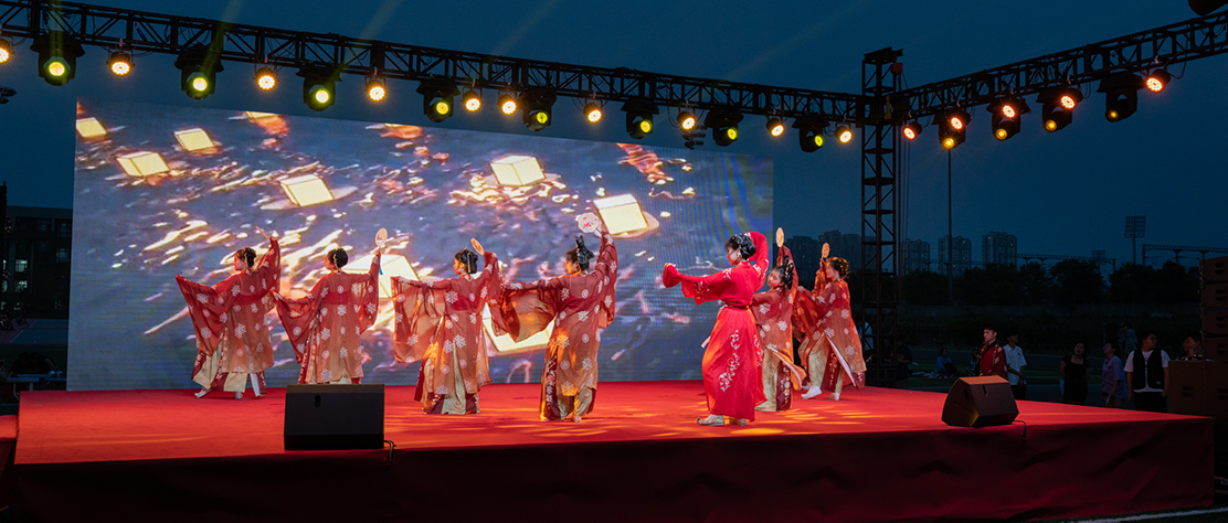 歌声,是青春的绽放;舞蹈,是青春的律动。一场青春灵动的歌伴舞表演《第一天》瞬间激活了现场的气氛,舞台上活力四射的舞姿彰显着青春的模样;民乐合奏《兰亭序》、民族舞《美人关》、《花辞树》、《西厢寻他》、《白马》气清意远,展现了中华优秀传统文化的韵味和美好;歌曲《永恒》、《大鱼》、《逍遥游》悠扬的曲调唤醒了我们对青春的美好回忆,思念层层叠叠,一起奔赴星辰大海。