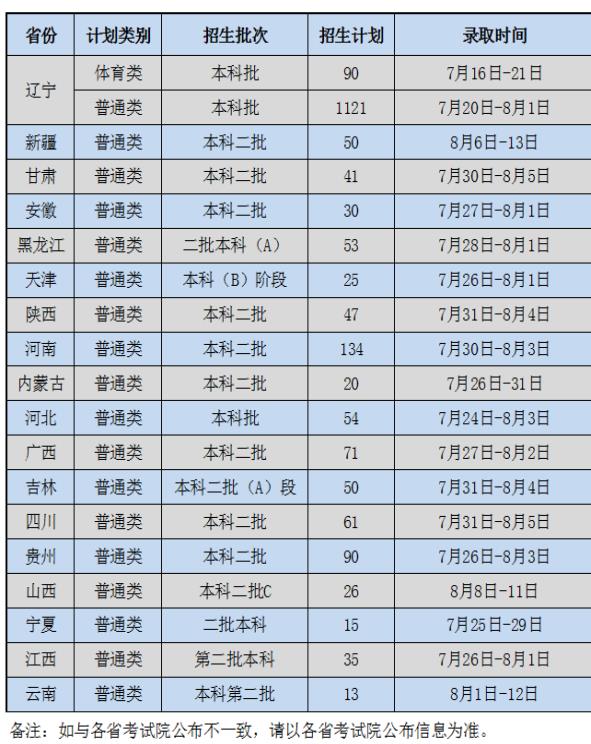 一、2023年我校各省录取时间安排