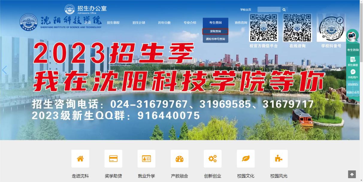 2、登录学校官网查询:www.syist.edu.cn