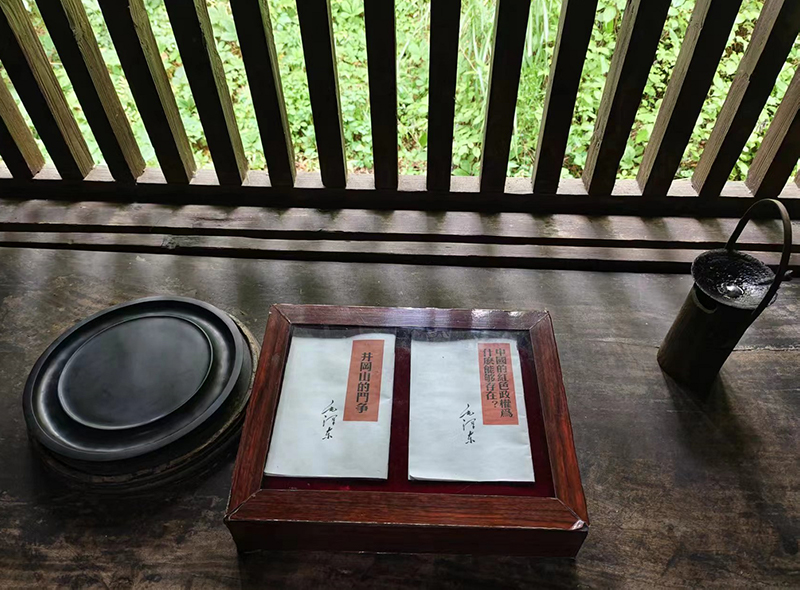 在茅坪八角楼革命旧址内,站在八角形天窗下,大家满怀崇敬,追忆毛主席当年借着清油灯一根灯芯的微弱灯光,写下《中国的红色政权为什么能够存在?》《井冈山的斗争》两篇光辉著作的场景。在大井毛泽东、朱德旧居中,同学们了解白屋残墙的往事,学习毛主席坚持学习勇探索的决心和意志。