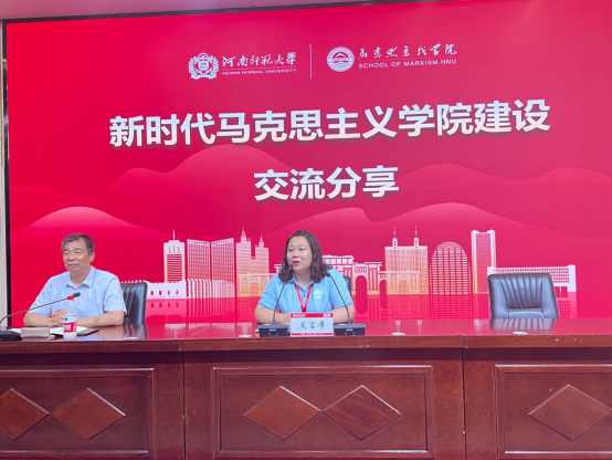 随后,来自全国18所高校的马院院长围绕“新时代马克思主义学院建设”进行交流分享。我校刘芳院长介绍了马克思主义学院的师资队伍、课程讲授等基本情况,并指出,全体思政教师要在本次研修中做到学思践悟,力争教学科研能力不断提升。其他高校马院院长分别介绍了各自学院的学科建设、师资队伍建设等经验,研修交流氛围热切。