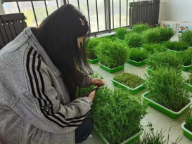 图为 劳动教育室内土培植物