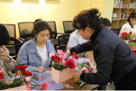 图为 劳动教育实践——插花品香活动