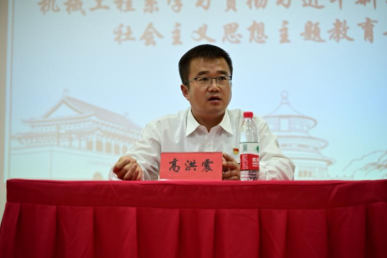 高洪震在讲话中指出,深入开展学习贯彻习近平新时代中国特色社会主义思想主题教育,是以习近平同志为核心的党中央作出的重大部署,是事关党和国家事业发展全局的一件大事。机械工程系党总支要按照省委教育工委及学校党委主题教育工作要求,细心部署,精心谋划。同时,围绕省委教育工委及学校党委要求,落实好主题教育各项任务提五点意见。一是准确把握主题教育目标要求,切实把思想和行动统一到党中央部署及省委要求上来;二是紧密结合工作实际,切实增强开展主题教育的实效性;三是认真解决实际问题,着力把主题教育成果体现到推动院系高质量发展、惠及全体师生上,四是全面深入检视问题,务求主题教育各项整改整治任务落实落地;五是压实责任强化引导,以严实作风确保主题教育取得成效。