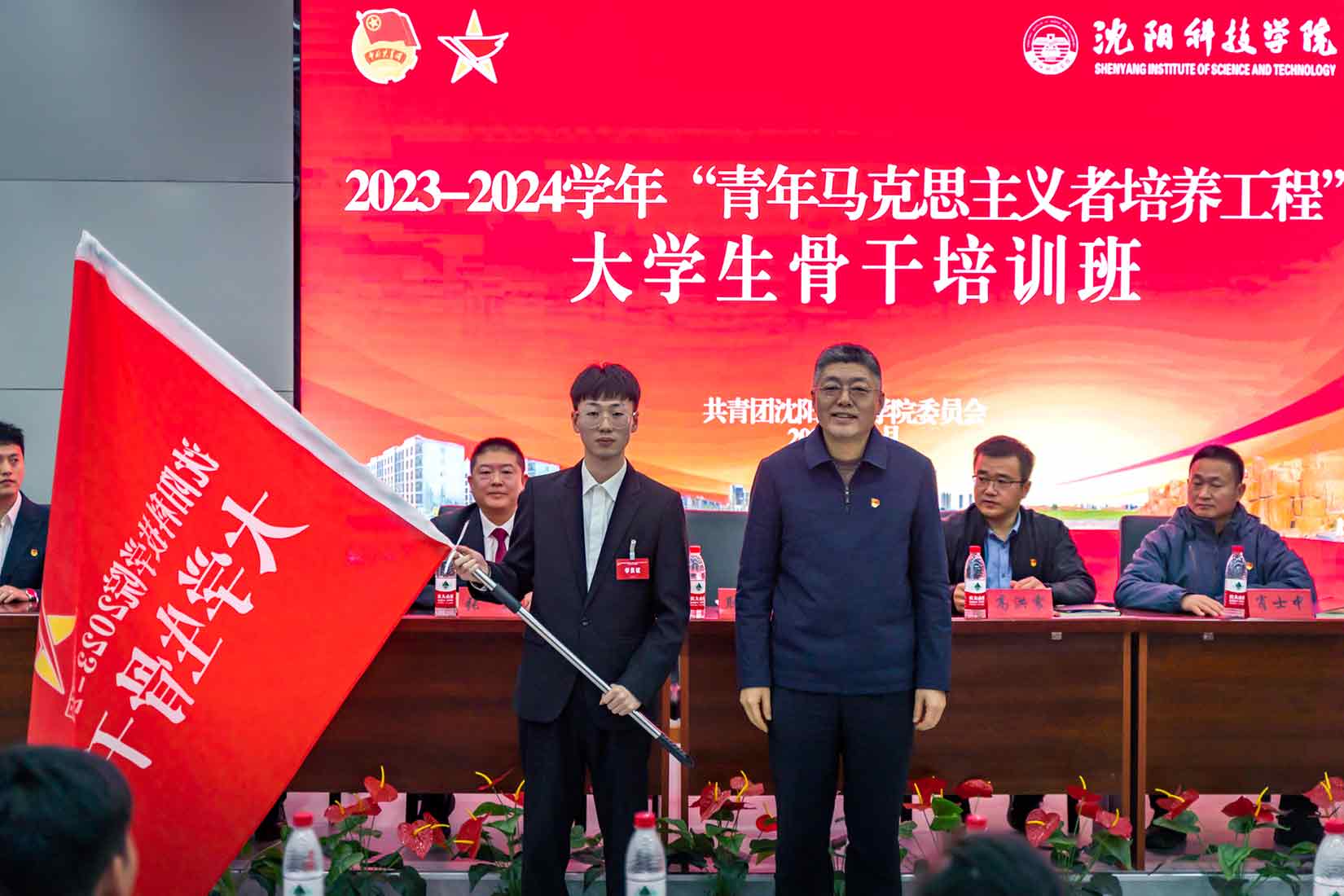 党委书记耿乃国为2023—2024学年“青年马克思主义者培养工程”大学生骨干培训班授旗并作动员讲话,他提出,实施“青年马克思主义者培养工程”是一项重要的政治任务,是确保党的事业发达、后继有人的一项“政治工程”。他对本期学员提出了三点希望:一要珍惜学习机会、把握学习机遇,深入理解马克思主义理论。二要坚定理想信念、传承红色基因,充分发挥示范引领作用。三要练就过硬本领,践行责任使命,在评估建设中挺膺担当。