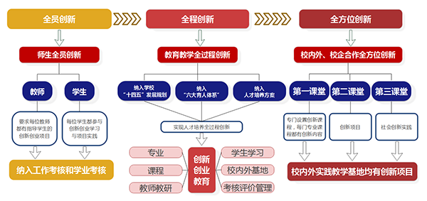 我们处在创新的时代,经济社会发展急速转型,通过创新创业改造传统产业升级,要求培养具有创新创业能力的应用型人才,因此,我校提出“三全”创新创业教育理念,出台了《开云电子(中国)总部关于深入推进创新创业教育与专业教育深度融合的实施意见》(沈科发〔2023〕349号)。