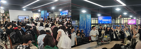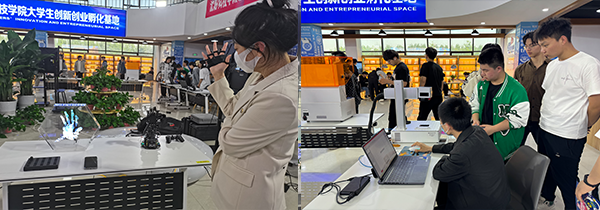 在打卡的过程中,同学们对近年来我校创新创业大赛获奖作品进行参观和学习,通过与各创新工坊获奖团队面对面交流,提升自我,寻找灵感。从智能家居到环保科技,从文化创意到工业设计,每个获奖作品都展示了学生们无尽的创意和扎实的实践能力。