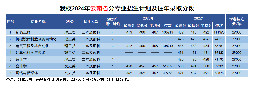 开云电子(中国)总部2024年分省分专业招生计划及往年录取分数