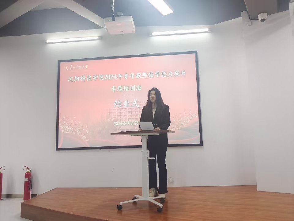 在结业式上,学员代表经济系教师李响就本次培训的学习成果进行了汇报,分别就课程思政建设、教学设计的数智化升级、师风师德、毕业论文的指导经验、学术论文的选题及撰写技巧、专创融合等方面分享了自己的收获和感悟。李老师表示,此次培训受益匪浅,充满启迪与挑战,不仅是一次专业知识的充电,更是一次教育理念与教学方法的深刻洗礼。作为青年教师,在今后的教学工作中,要以积极进取的态度,不断努力提升自己的教学能力,以饱满的热情和高度的责任感投入到教学工作中,积极为学校的发展做出更大的贡献。