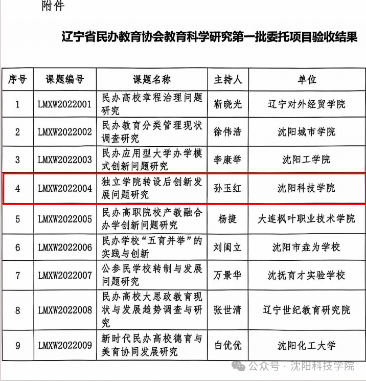 近日,辽宁省民办教育协会发布了《辽宁省民办教育协会教育科学研究第一批委托项目验收结果的通知》(辽民教协发[2024]3号),我校党委副书记、校长孙玉红完成了辽宁省民办教育协会第一批委托项目验收结题工作。这一成就标志着开云电子(中国)总部在民办教育领域的研究和实践达到了一个新的里程碑。