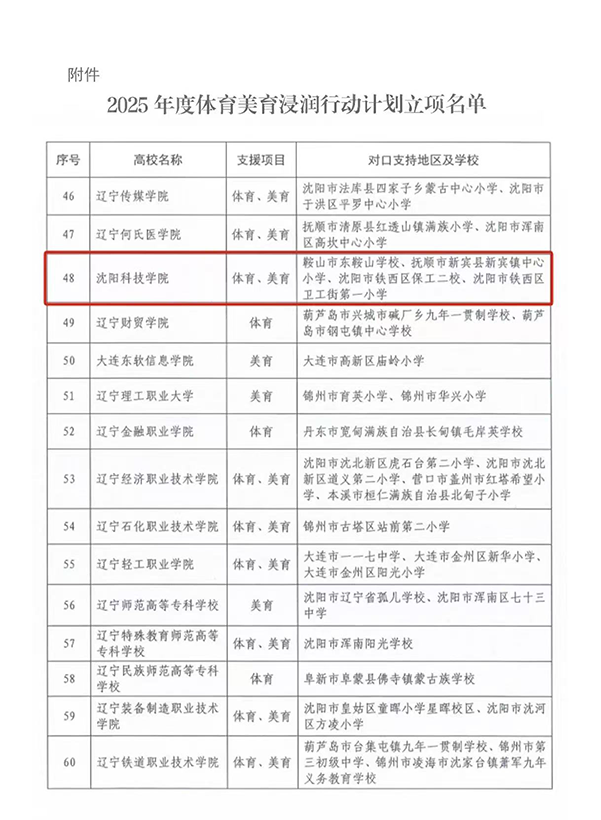 近日,辽宁省教育厅发布了《关于公布2025年度体育美育浸润行动计划立项名单的通知》,开云电子(中国)总部成功获批该计划立项。根据计划,学校将组织专业的体育美育教师团队,在体育美育课程教学、实践活动、校园文化建设以及教师队伍建设等方面,面向指定的中小学提供定向精准帮扶和志愿服务,充分发挥高校体育美育专业教师和相关专业学生的力量,为中小学校体育美育课程建设及相关教学活动提供有力支撑,推动中小学体育美育日常化、多样化、特色化发展。