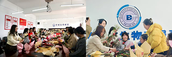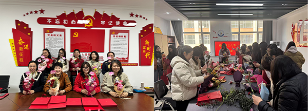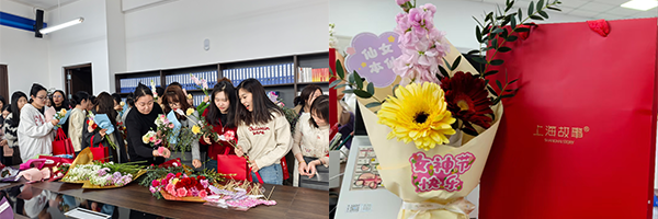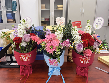 在随后的插花活动中,专业花艺师现场教学,从花材选择、色彩搭配到创意设计,带领女教职工们开启一场与鲜花的对话。康乃馨、玫瑰、洋牡丹、紫罗兰等各色花卉在巧手中被赋予新的生命。“插花是静心的艺术,每一枝花都藏着对生活的热爱。”活动现场花香弥漫,笑语盈盈,一件件独具匠心的花艺作品不仅装点了春日的校园,更传递着女教职工们对美好生活的向往。