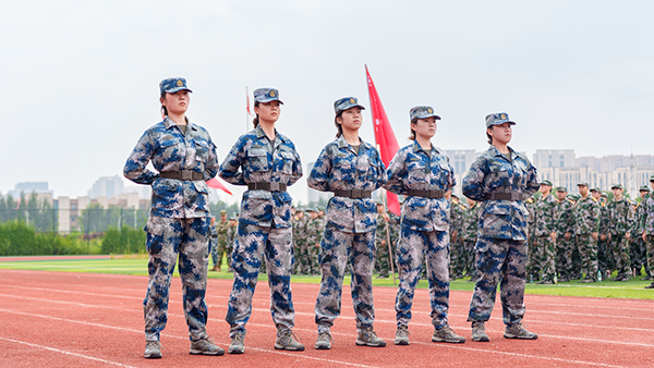 电气工程学院自动化专业2502班杨晨皓代表全体新生宣誓。他表示,必将严格训练,锻炼自己,磨炼意志,培养吃苦耐劳的精神和自律自强的品格,保证圆满完成军训各项训练任务。