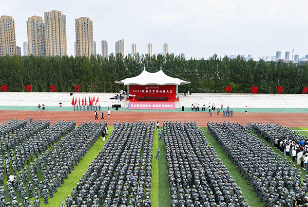 热血军训,淬炼品格,沈科新兵,整装待发。9月1日下午,我校2025级新生军训动员大会在北校区风雨体育场召开,校党委副书记、副校长高洪震,学生处、校团委及各学院相关领导,学生工作部门、军事理论课教研室教师,新生辅导员,全体军训教官出席大会。大会由学生处副处长李松主持。