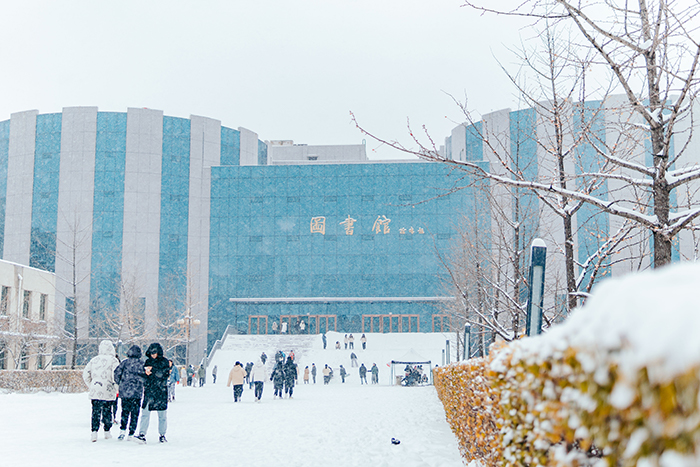 雪景下的图书馆